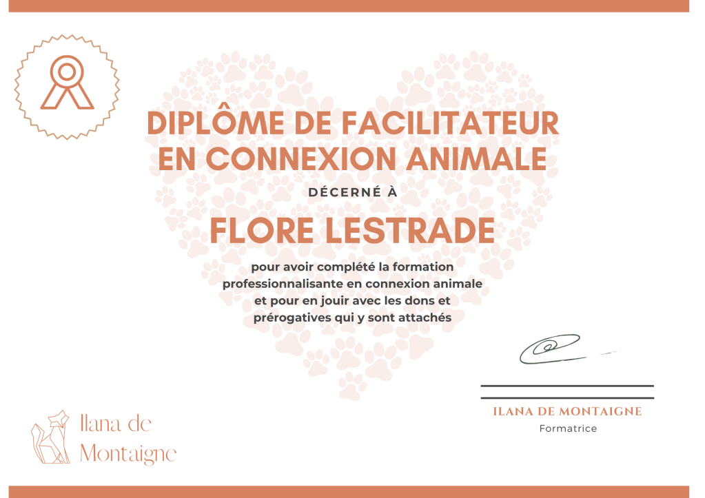 J’ai d’abord été formée par Ilana de Montaigne pendant 8 mois intensifs. Pour découvrir son univers et suivre toute son actualité : https://lecole-des-animaux.com/